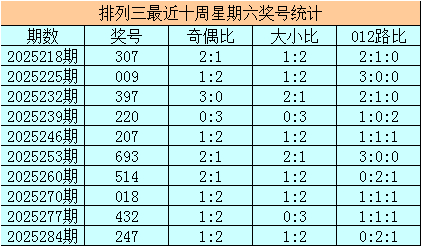 成列三十周星期六隔离开出奖号:247、432、018、514、693、207、220、397、009、307,其中号码奇偶比为14:16,奇偶号码出现比例格外;号码大小比为10:20,大号证据较冷;号码012路比为14:9:7,0路号码热出。