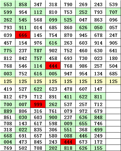 另外,历史上直选号码125开出8次,其下期开出奖号为:419、527、622、623、478、607、147,前后10期隔离开出号码: